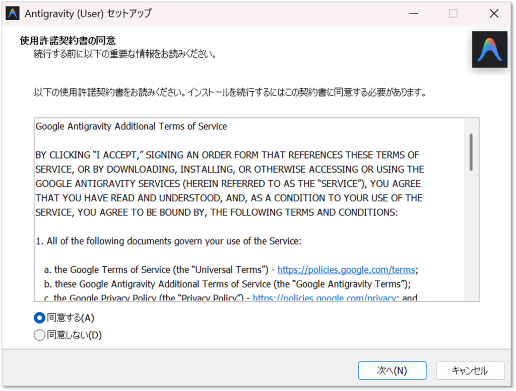 Antigravityのインストール手順