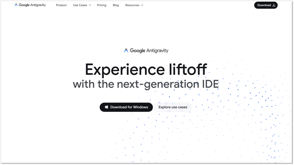 ブラウザで「Antigravity」と検索するか、直接 「Antigravity公式サイト 」 にアクセスします。