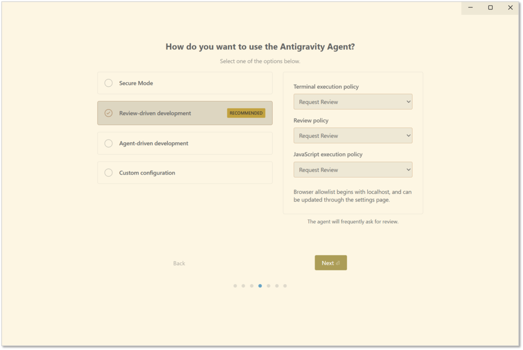 安全ですが、Antigravityならではの便利な自律機能があまり使えません。