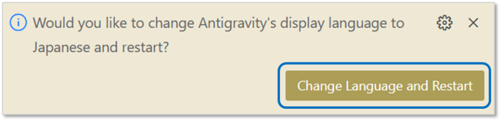 日本語に変更してAntigravityを再起動します。