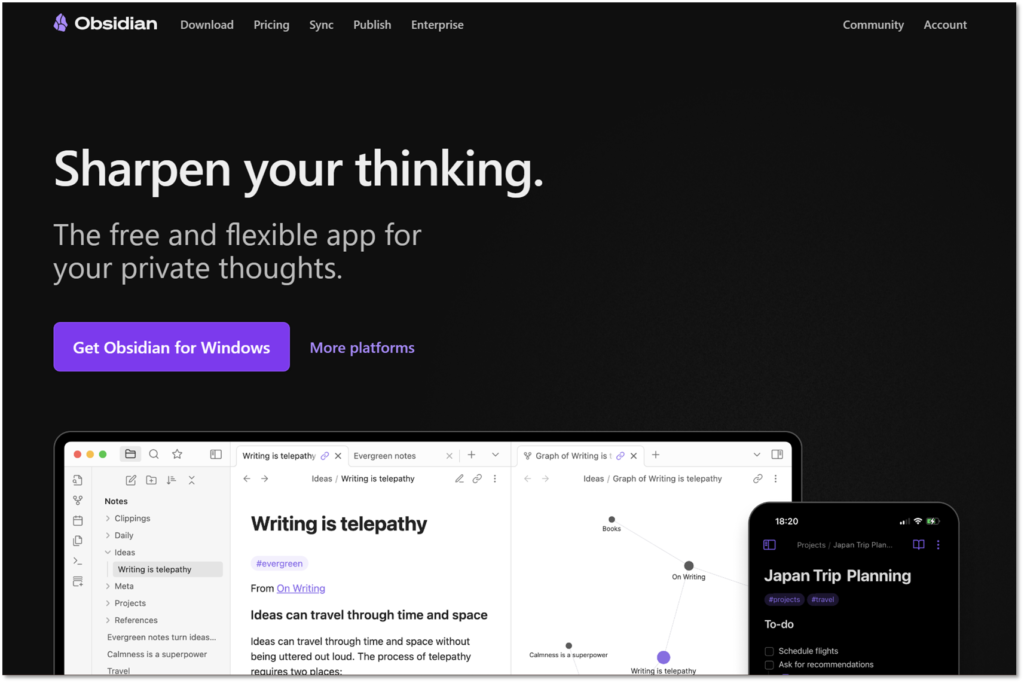 Obsidian(オブシディアン)は、テキストファイルでメモを管理するツールです。