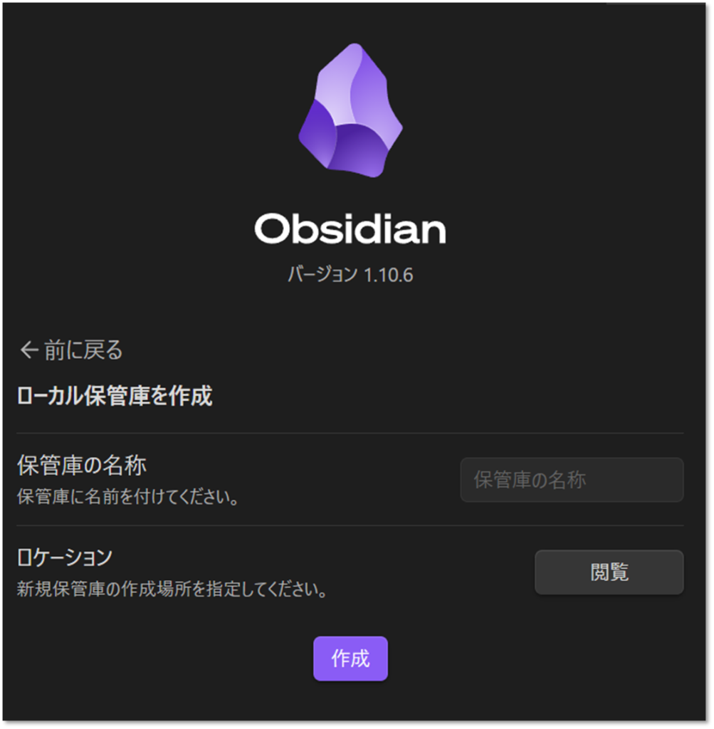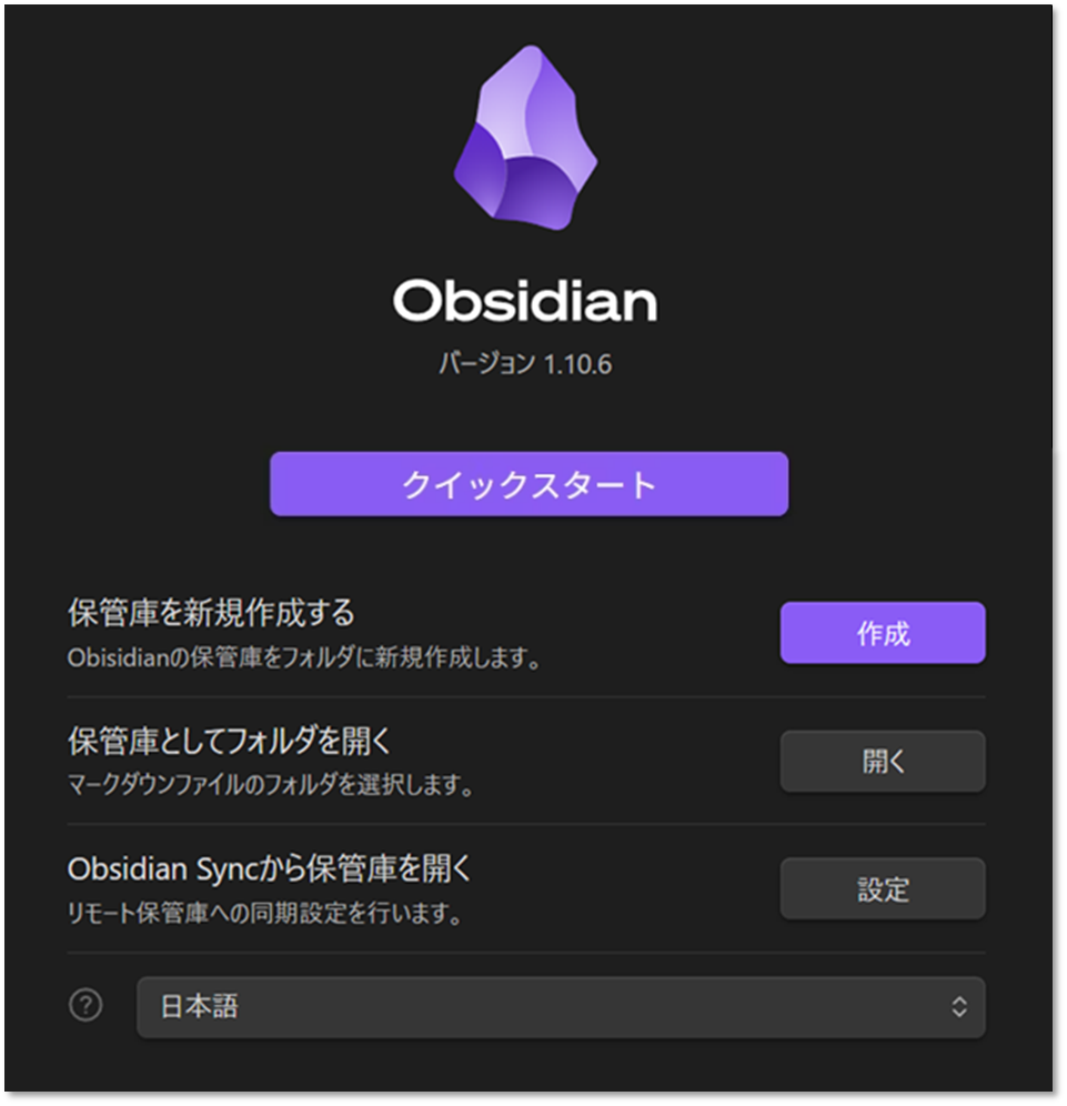 Obsidianをインストールすると、「Vault(Obsidianデータの保管庫)の保存場所を選んでください」と聞かれます。